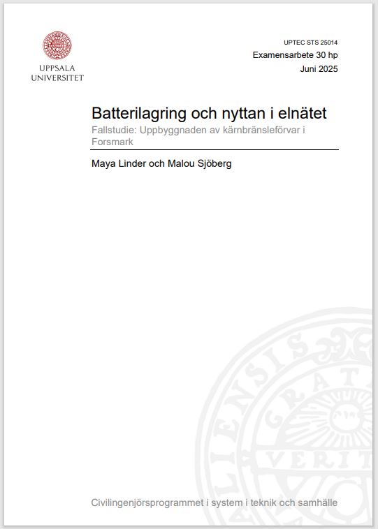 När bygget av Kärnbränsleförvaret i Forsmark drar igång ställs höga krav på elförsörjningen. Men vad händer när elnätet inte räcker till? Malou Sjöberg och Maya Linder har i sitt examensarbete undersökt om ett batterilager kan vara lösningen på effekt- och kapacitetsbristen.