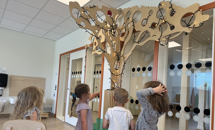 — Det känns bra att trädet kom till användning. Nu sprider det glädje till barnen på Fröet varje dag. Det är extra kul att personalen jobbar vidare med det och gör trädet levande med både lampor och nyinflyttade gäster, tycker Julia Holmgren, kommunikatör på SKB.