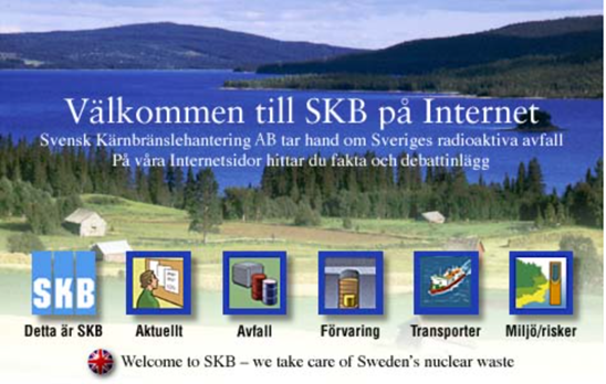 Webbplatsen var uppbyggd med olika rubriker som till exempel ”Detta är SKB”, ”Aktuellt”, ”Förvaring” och ”Avfall”. Under ”Aktuellt” publicerades nyheter och pressmeddelanden. Vi ville också engagera våra besökare. Därför hade vi en övningsuppgift där besökaren själv fick föreslå en plats för ett djupförvar (som vi sa då) och motivera sitt val. Förslagen skickades in via e-post och varje månad utsågs en vinnare. Vinsten? SKB planterade tio träd i Afrika genom VI-Skogen, som bedrev projekt i Kenya, Tanzania och Uganda. Ett tidigt exempel på hur digitala initiativ kunde kopplas till hållbarhet.