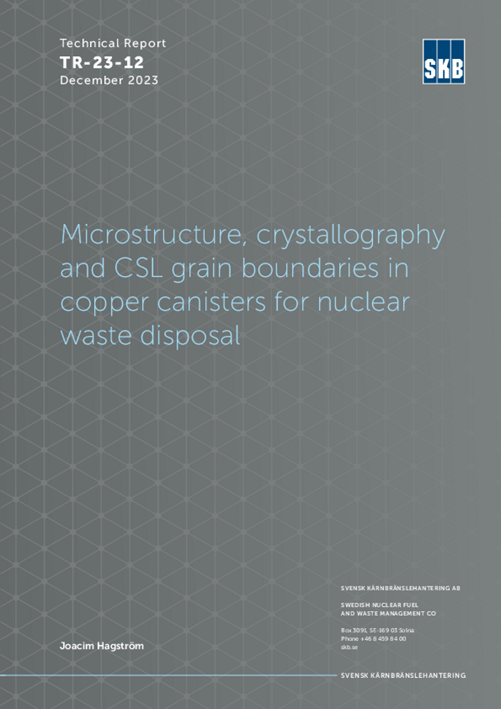Microstructure, crystallography and CSL grain boundaries in copper canisters for nuclear waste disposal