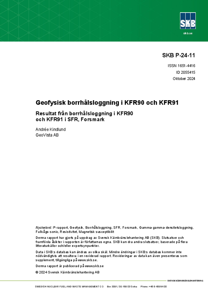 Geofysisk borrhålsloggning i KFR90 och KFR91. Resultat från borrhålsloggning i KFR90 och KFR91 i SFR, Forsmark