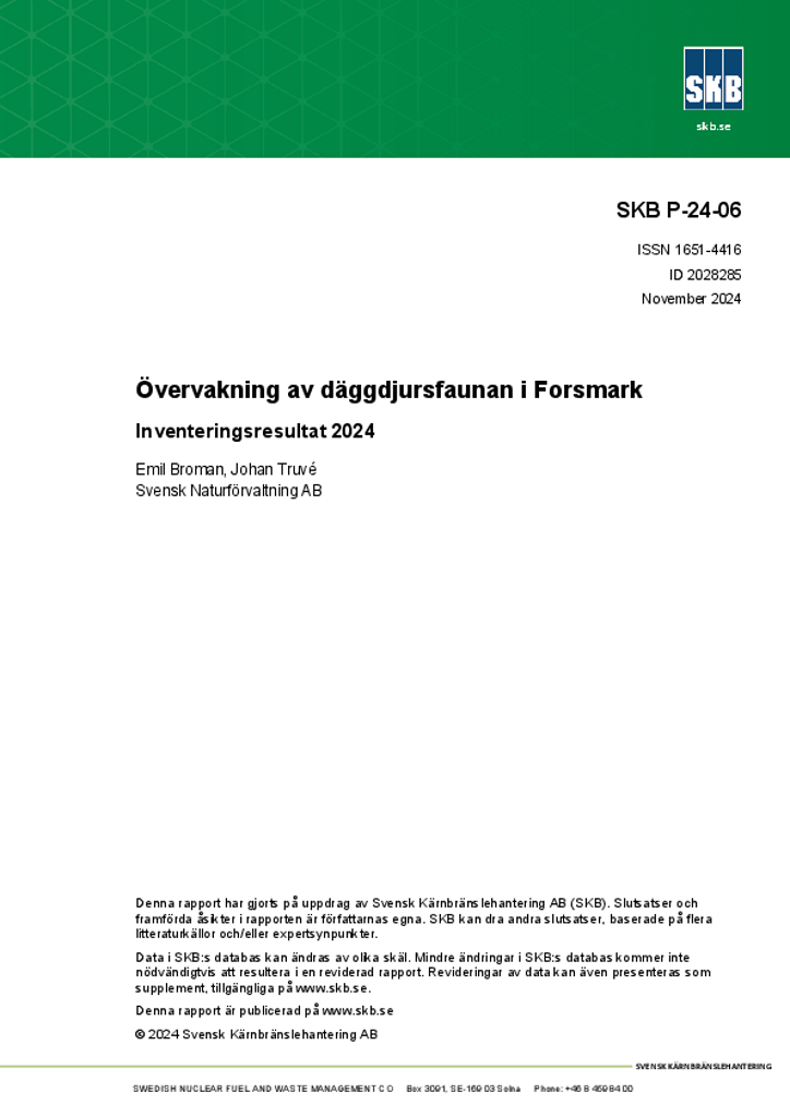Övervakning av däggdjursfaunan i Forsmark. Inventeringsresultat 2024
