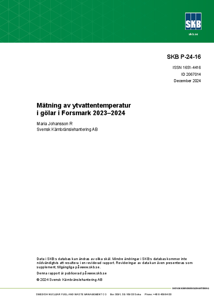Mätning av ytvattentemperatur i gölar i Forsmark 2023-2024