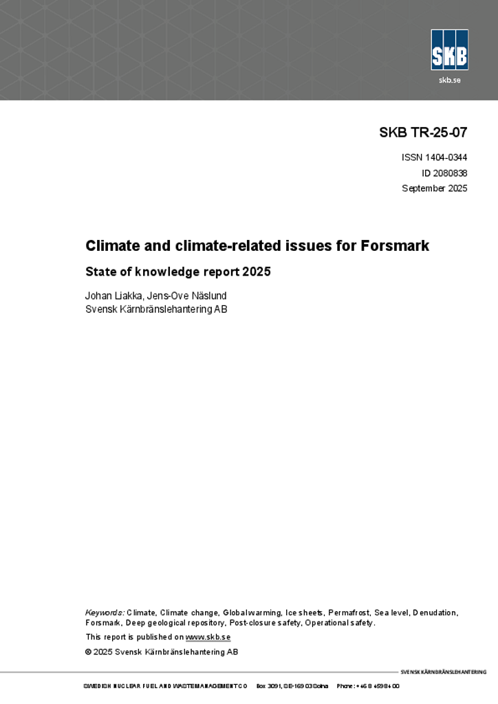 Climate and climate-related issues for Forsmark. State of knowledge report 2025